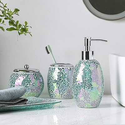 Green Glass Bathroom Accessories Uk Shop / Buy Ceramic 4 Piece Bathroom Accessories Set Complete Hand Paint Bath Countertop Aceessory Soap Dispenser Set Online In Kazakhstan B08pjh3l4s - Sage green makes an excellent backdrop for palm trees on tissue covers, toothbrush holders, and lotion dispensers.
